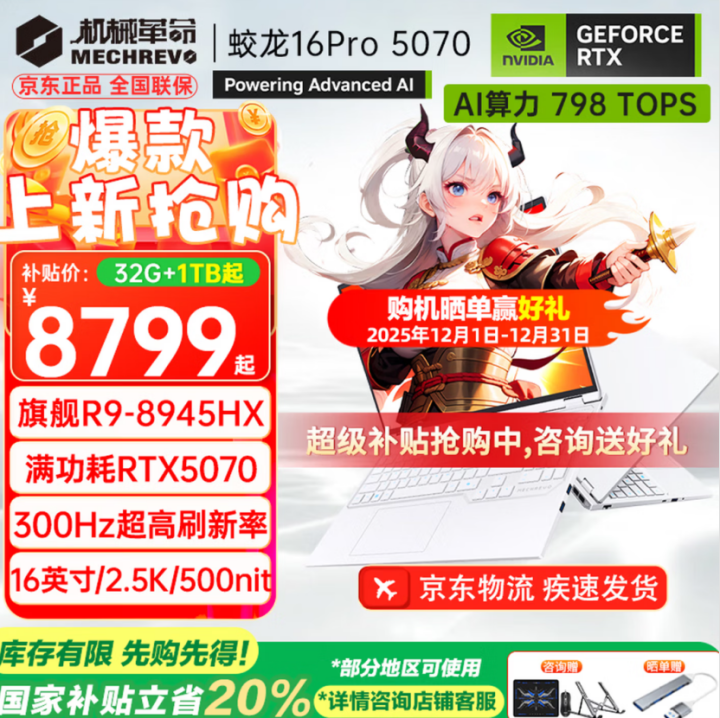 年终购物季,各大平台促销活动陆续开启,正是升级游戏装备的好时机。如果你追求能够在2K分辨率下畅玩3A大作,并兼顾AI计算与内容创作的性能,那么搭载AMD锐龙9处理器与RTX 5070笔记本电脑GPU的游戏本值得重点关注。今天我们梳理了三款热门机型——机械革命蛟龙16 Pro、联想拯救者R7000P 2025与华硕天选6 Pro锐龙版,从性能释放、屏幕素质、设计细节等方面进行分析,助你做出更契合自身需求的选择。